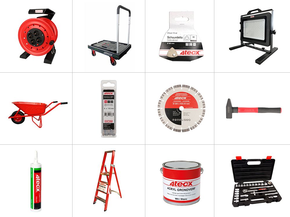Het uitgebreide assortiment van 4tecx omvat diverse producten voor de professional in de bouw én industrie. Het assortiment wordt regelmatig uitgebreid met nieuwe artikelen.